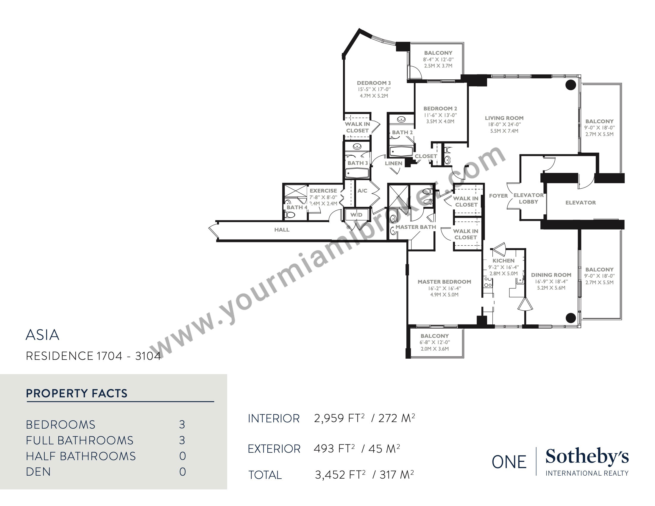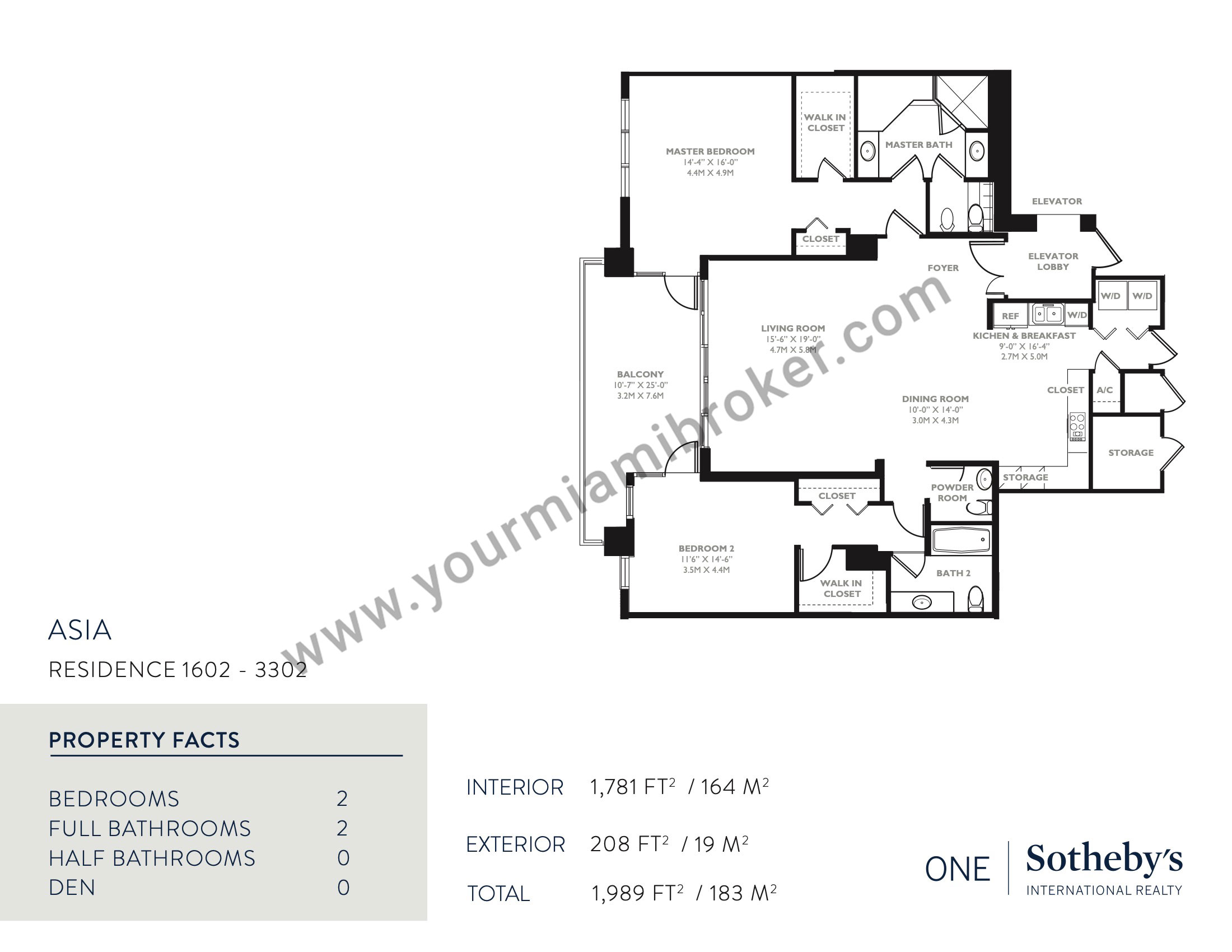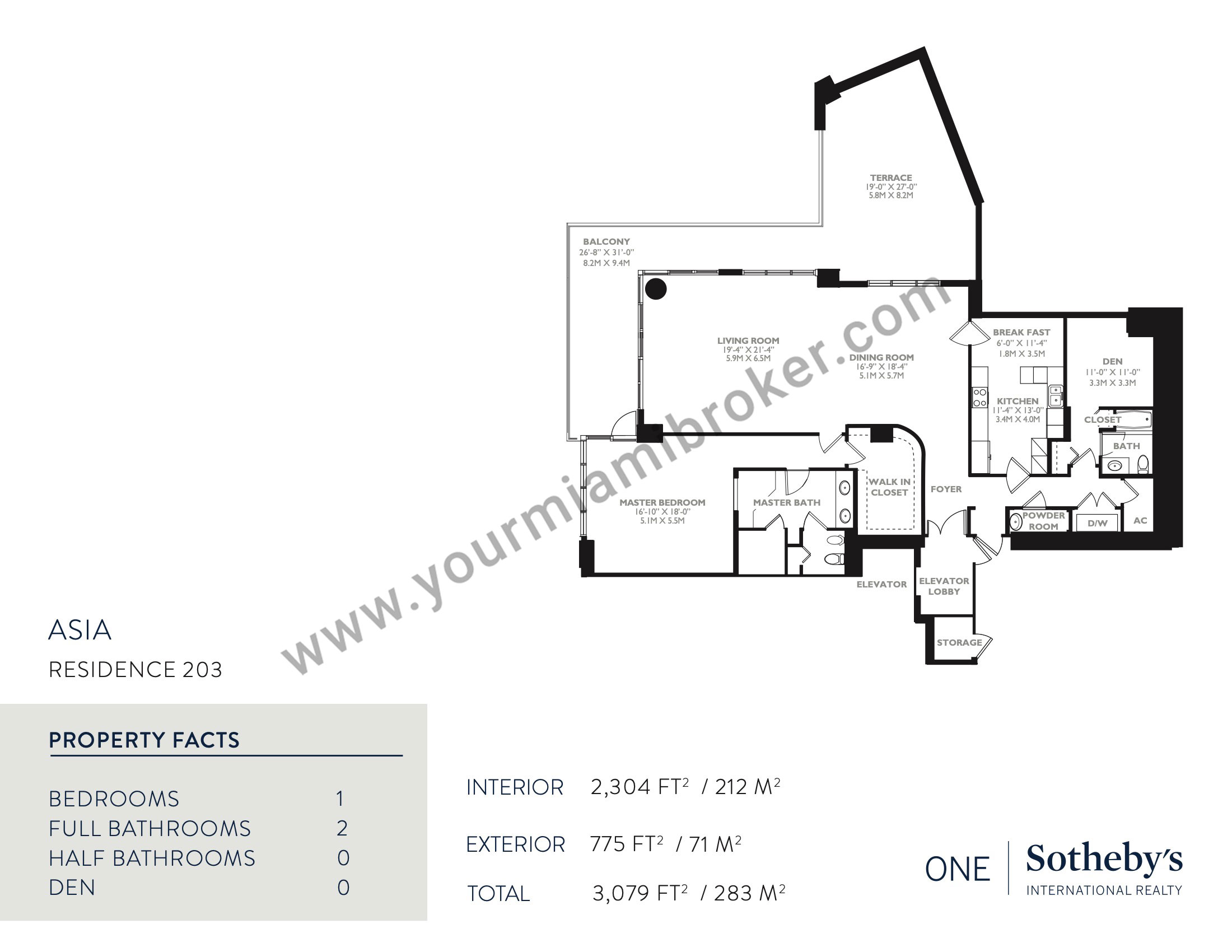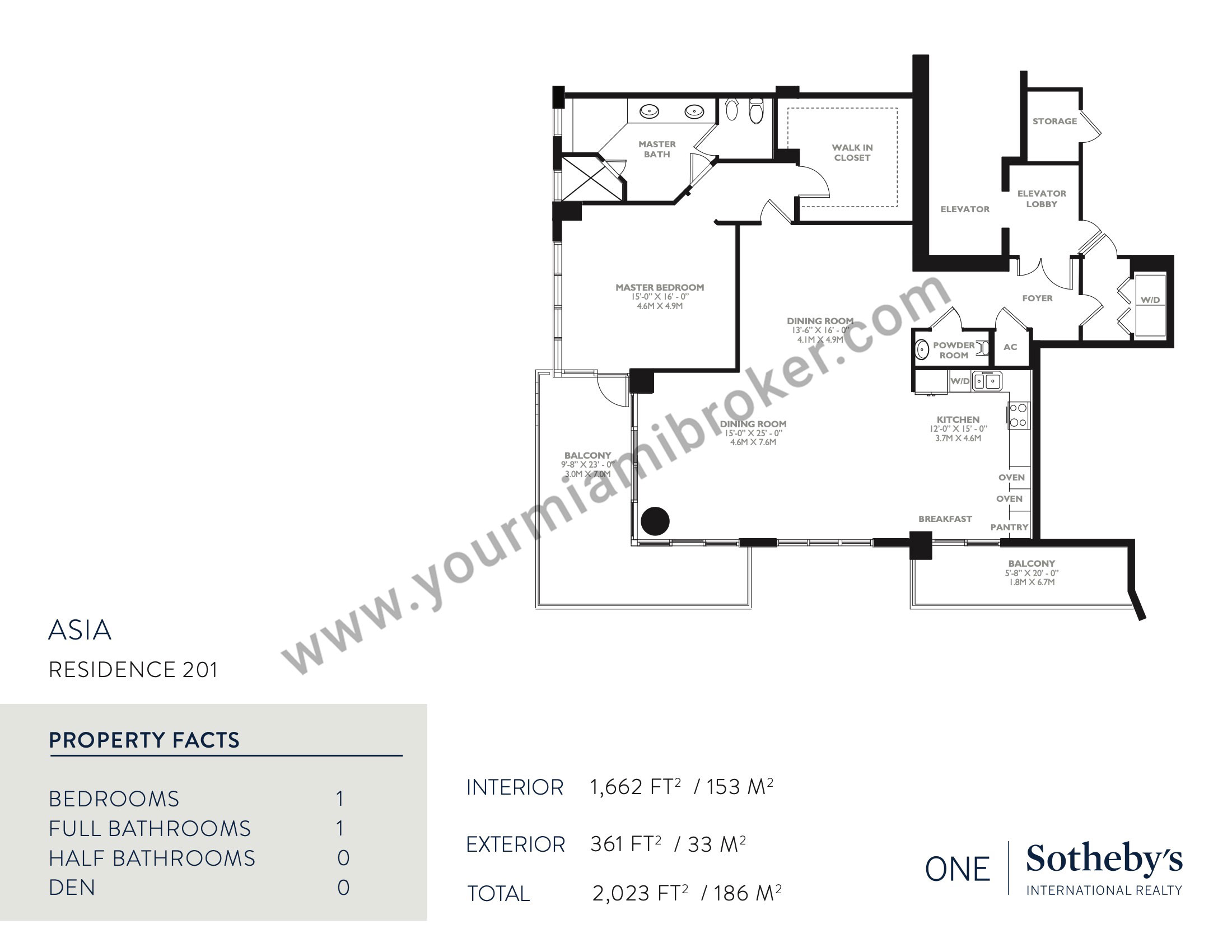 Asia is one of the most unique structures in Brickell Key, but despite rising more than 480 feet into the sky and taking the spot as Miami’s 20th tallest building, the mega-condominium houses no more than five residences per floor to assure privacy. It’s exclusive location means views of the Miami River, Biscayne Bay, and the Downtown skyline and its interiors boast 12 foot ceilings and up to four massive bedrooms.