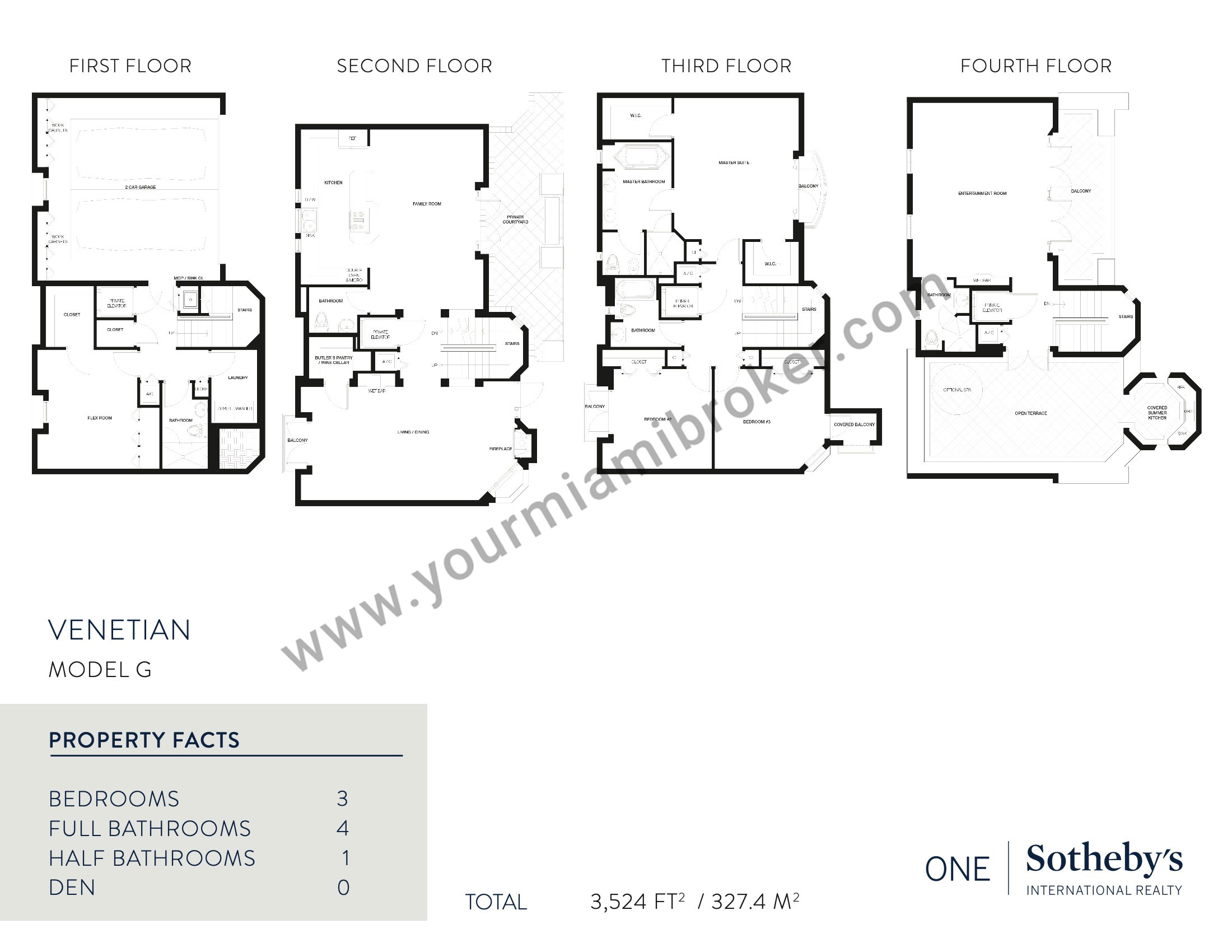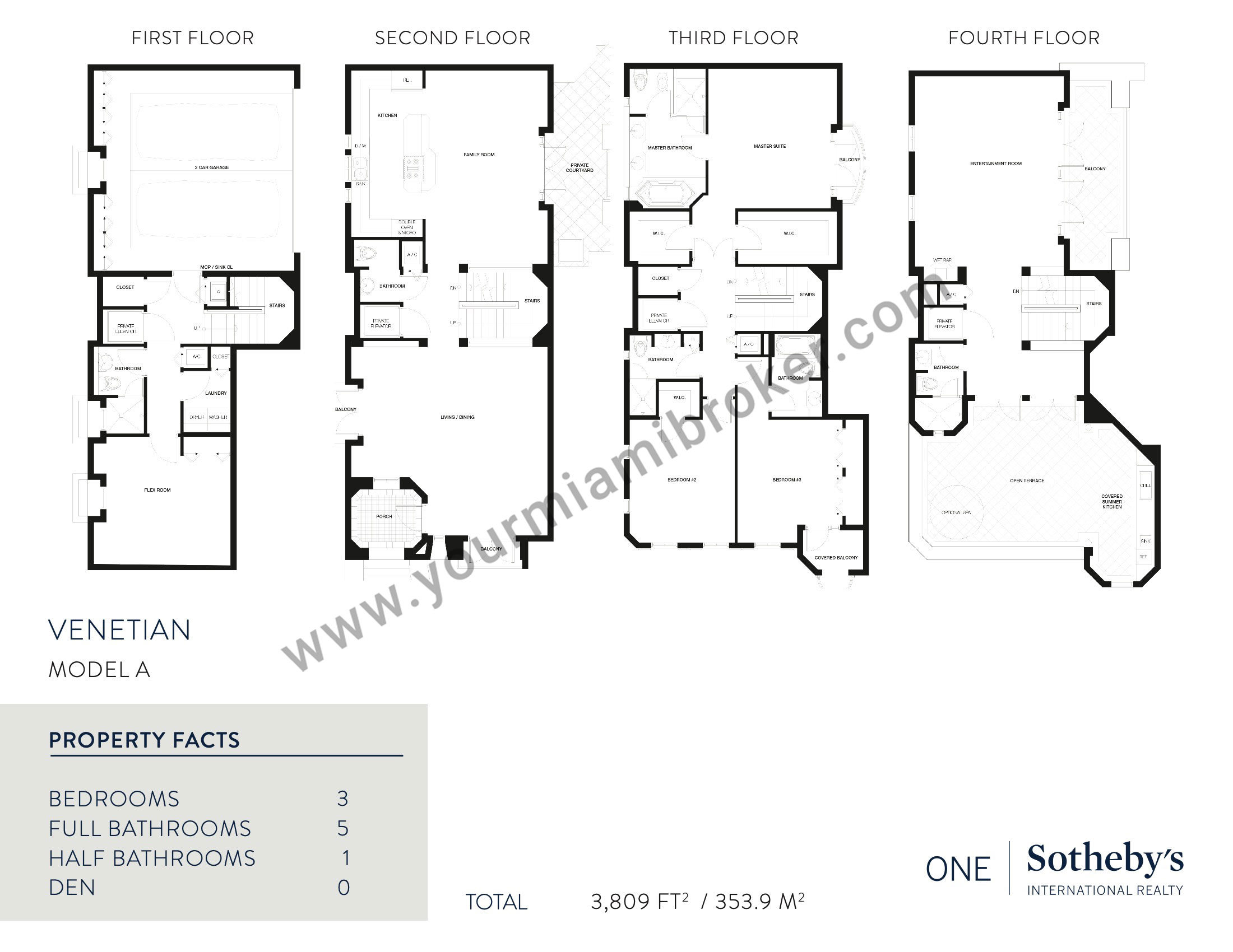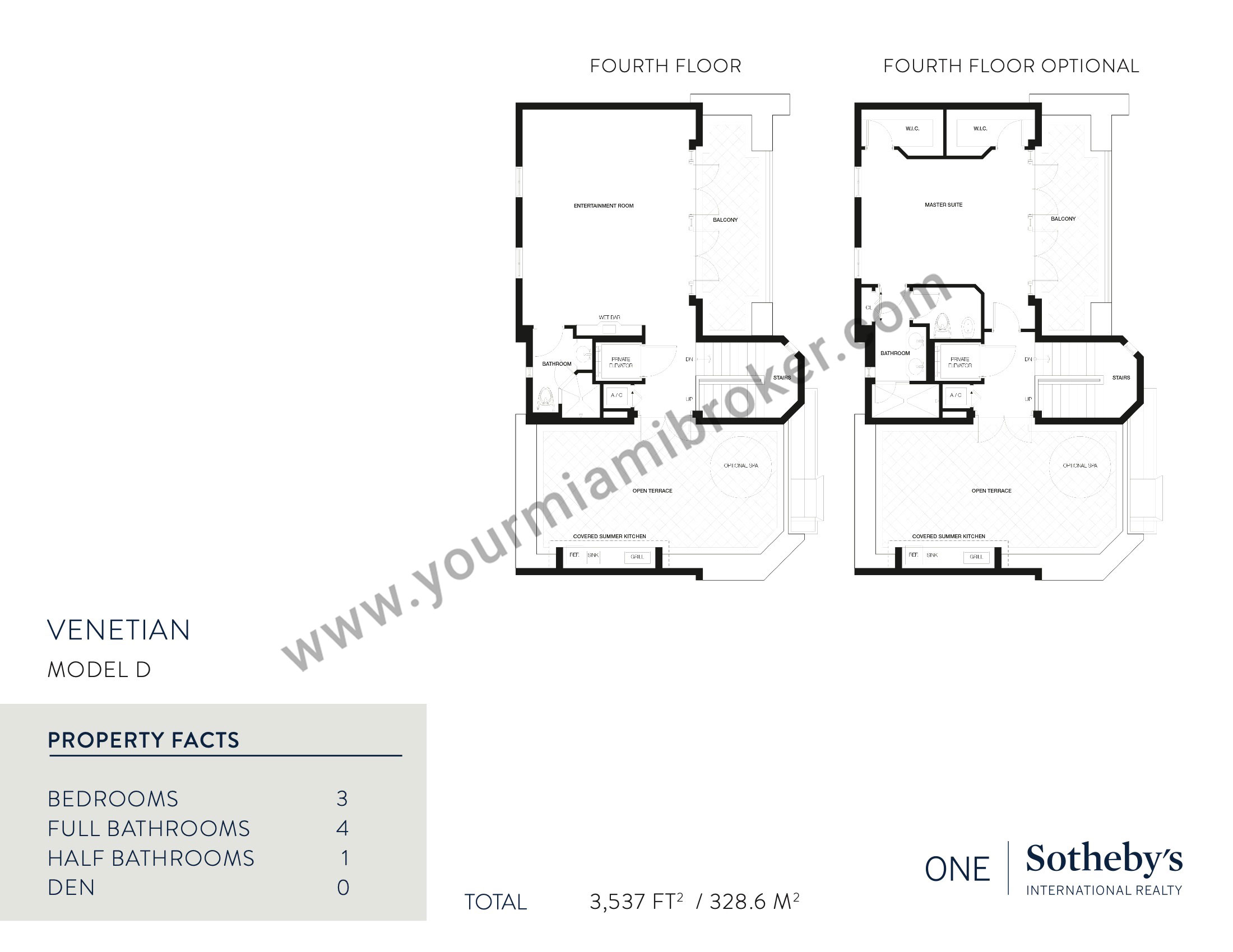 The four story Venetian in Coral Gables is a building located across the street from the Venetian Pool. Instead of the customary Coral Gables condos for sale, the residences within are actually more along the lines of villas with an architecture that captures the yesteryear ambiance of “City Beautiful”. You’ll find twenty of them within Venetian available with three bedrooms.
